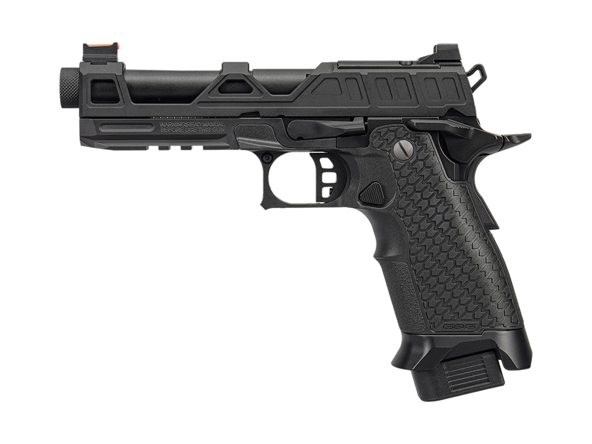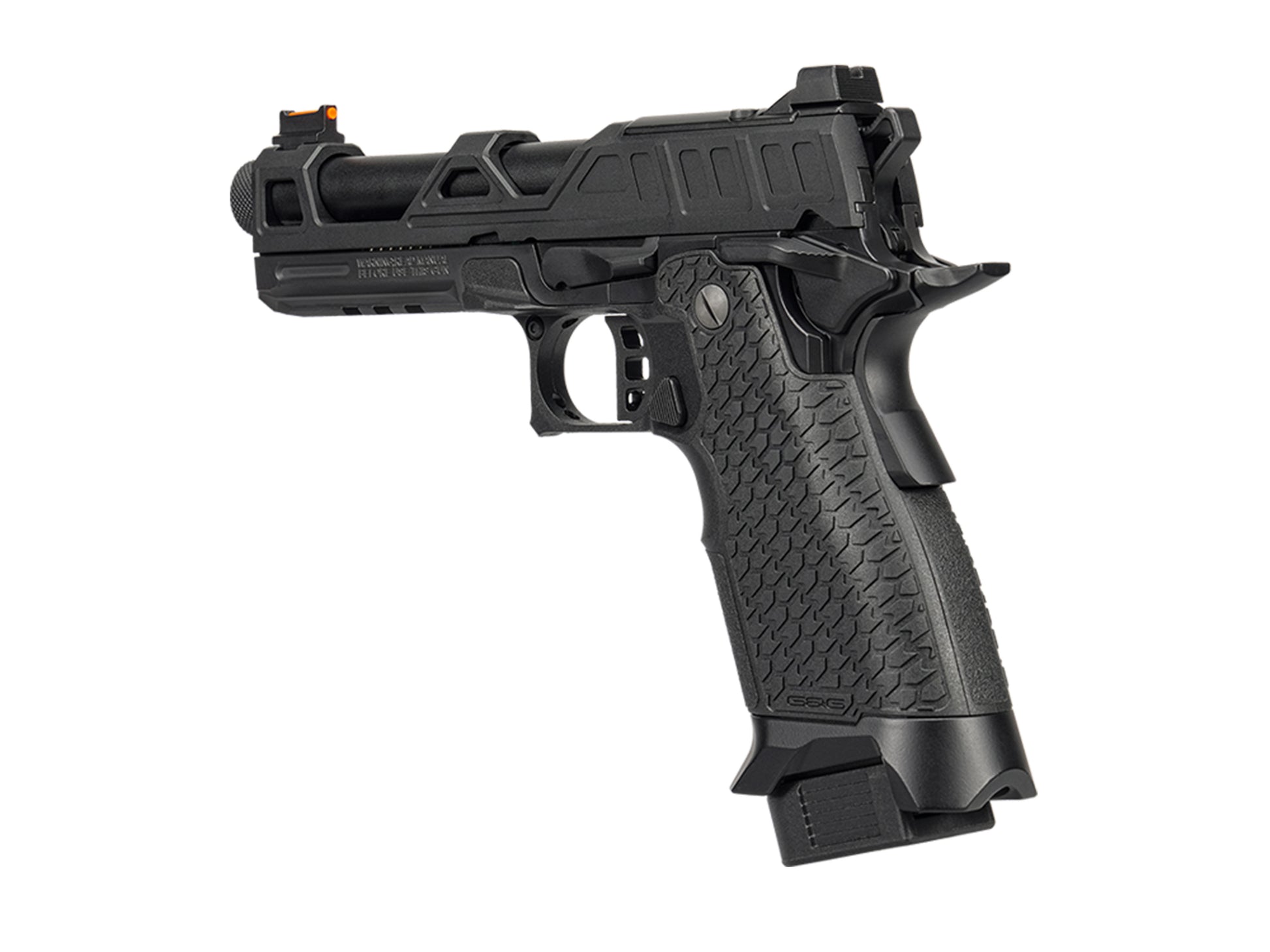 Designed for COMPETITION—dot sight ready, lightening-cut CNC-machined aluminum slide and CNC-machined middle frame to increase speed and durability. 2024 CP offers fully a fully ambidextrous slide release and safety, an integrated The Patented Hop-Up unit provides the most accurate ballistics when using 0.2g to 0.4g BBs. The adjustment tool is hidden within the recoil spring guide, which allows you to easily access and adjust the trigger and Hop-Up unit without requiring a disassembly of the slide or multiple tools.